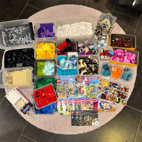 Iso laatikollinen Lego Friendsejä sekä Barbie legoja hieman. Löytyy paljon rakennusalustoja, hahmoja, eläimiä, kaikenlaisia palikoita. Mukana on joitakin Lego Friends pakettien kokoamisohjeita