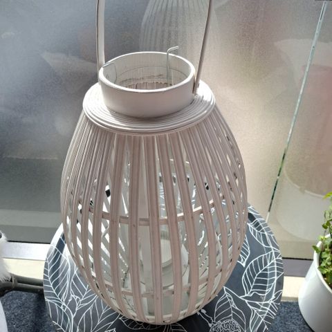 Luhta Homen lasinen pitsikuvioinen lyhty, alaosa maalattua puuta. Korkeus n. 26,5 cm.