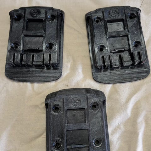 Musta akkutelakka RHE tekstillä. Tämä on ihan uusi ja käyttämätön alusta akulle. Kooltaan tämä on näppärän pieni käteen mahtuva telakka. Kotelossa on kiinnitystä varten reiät. Telineen saa laitettua vaikka seinään kiinni kätevää säilytystä varten. Saattaa olla, että tähän menee Bosch 18 merkkinen akku.