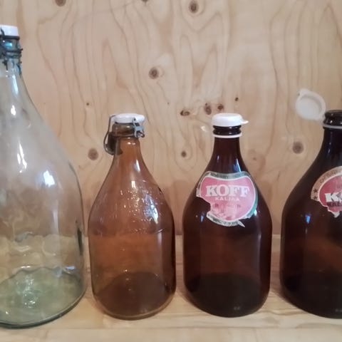 Sisustuspulloja. Toinen n. 30 cm korkea ja toinen hieman pienempi.