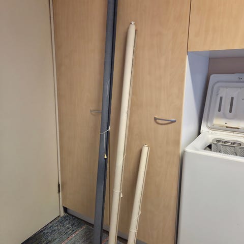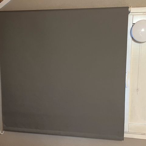 Kaksi käytettyä rullaverhoa. Ehjiä, toimivia, siistissä kunnossa, pari pientä melko huomaamatonta jälkeä kankaassa.