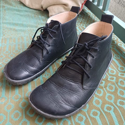 Nahkaiset vedenpitävällä kalvolla olevat paljasjalka välikausi tai leudon talvikelin kengät. Sisämitta 25cm.