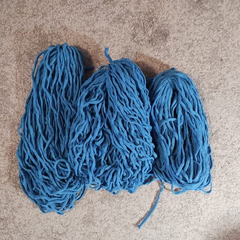 Turkoosia valmiiksi kerittyä ontelokudetta. Määrä 2,6 kiloa.