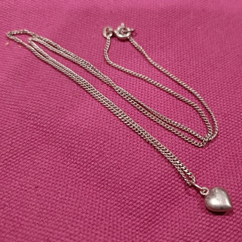 Kuvan mukainen kaulaketju sydän riipuksella 925 hopeaa,ketjun pituus 44cm hinta 10e nouto tai postitus kulut lisä 3e