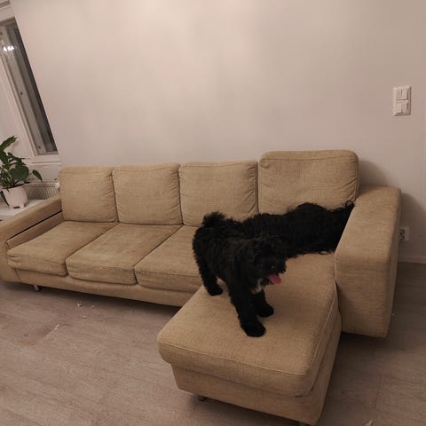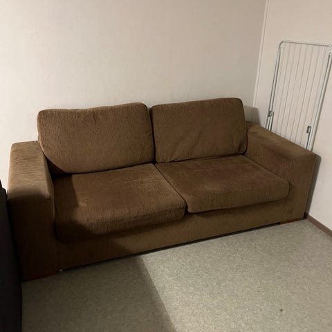 Myydään käytetty, siistikuntoinen sohva. Ruskeat päälliset teetetty, eli ovat irroitettavissa.