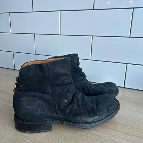 Upeat,siistit ja hyvin vähän käytetyt ( muutaman kerran jalassa) mokkanahkaiset nilkkurit.Korko n 10 cm.