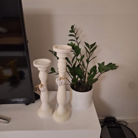 Kuvan rustiikkiset maalaisromanttiset puiset kynttilänjalat. Koko: isompi korkeus 30cm ja pienempi korkeus 25cm. Ehjät ja käyttökelpoiset. Kulkeutuu omien menojen mukaan rovaniemelle ja voin lähettää. Yhdessä 13 €