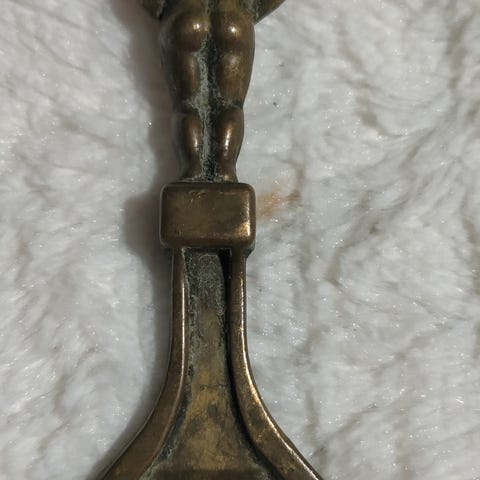 Pronssinen värinen Manneken Pis pullonavaaja. Korkeus noin 10 cm. Ajan patinoima, mutta muuten hyväkuntoinen.