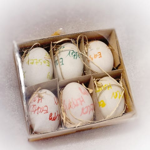 kelta-valko-vihreät pahviset munat. 12 kpl. Hinta 3 euroa.