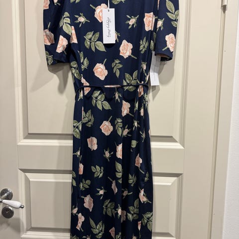 Tummansininen kukkamekko. Käyttämätön. Ostaja maksaa postikulut