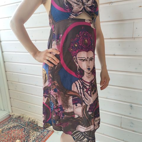 Animal hihaton, musta mekko koko UK10, vastaa kokoa S. Olkapäillä nauhat, joiden päissä on koristehelmet. Helman sivussa englantilaista kirjailua, broderie anglaise. Brodeeraukset näkyvät paremmin kuvassa, jossa laitoin niiden alle valkoisen paperin. Helmaosassa on vuorikangas. Mekon materiaali on upeasti laskeutuvaa viskoositrikoota - 95% viskoosi, 5% elastaani. Alaosan vuorikangas on 100% puuvillaa. Uusi.