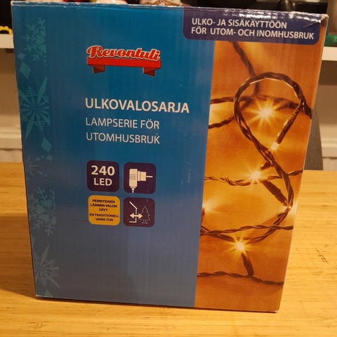 Käyttämätön Revontuli-ulkovalosarjan lisäsarja myynnissä. Hinta 5 euroa, nouto Herttoniemenrannasta, maksu käteinen tai mobilepay.