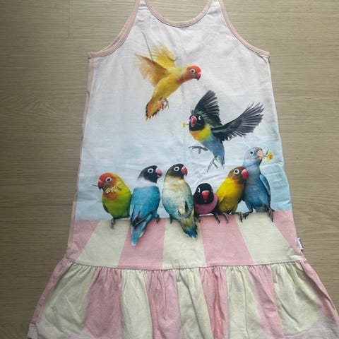 Molon mekko, koko 122/128. Erinomainen kunto. Hajusteeton ja eläimetön koti. Hinta 14 e noudettuna tai postikulut ostajalle.