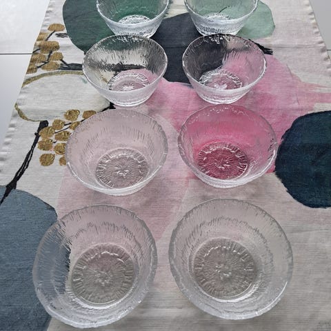 Tapio Wirkkalan Iittalalle suunnittelema pieni Solaris jälkiruokamalja, Halkaisija 11 cm ja korkeus 5 cm.