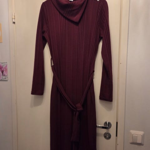 Harmaa neulemekko korkealla kauluksella. XS koko, mutta menee myös S koon käyttäjälle. Pikkaisen on käyttönukkaa, mutta ei häiritsevästi.