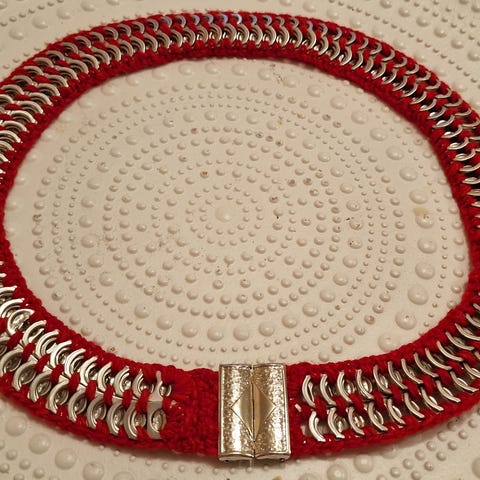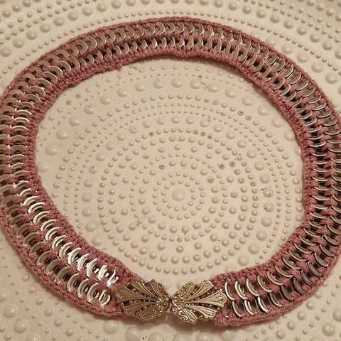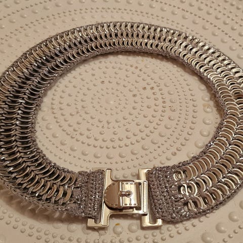 Myydään tölkin nipsuista tehty vyö. Pituus 100 cm + solki.