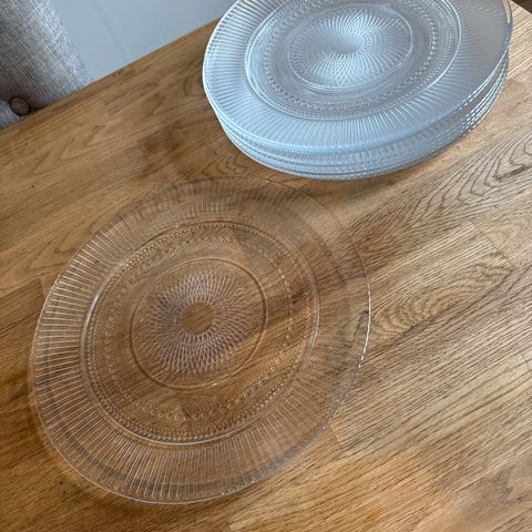 5 kappaletta lasilautasia. Halkaisija n. 14,5 cm.