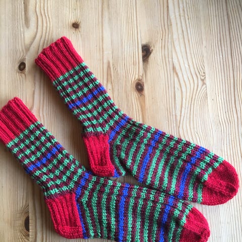 Uudet lyhyet villasukat. Neulottu Novita 7 veljestä langasta. Pesu 40 asteessa. Vahvistettu kantapää.