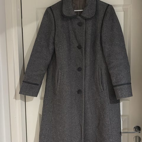 Tummanpunainen siisti Italialainen villakangastakki 1990-luku, koko 38, väljä A-linjainen malli. Pienet olkatoppaukset. Takin pituus kaula-helma 97 cm. Kaikai 87 cm ja hihan pituus kaula-hihansuu 71 cm ja hartioiden leveys 54 cm. Huom. raqlan hihat eli siksi hiha mitattu kaulalta hihansuuhun. Materiaali 70% villaa ja 30% polyamidi.