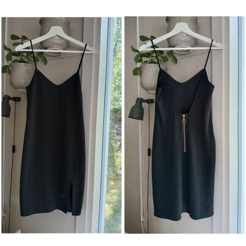 Musta mekko hopeisilla, kimaltavilla koristeluilla. Käytetty kerran, siistissä kunnossa.