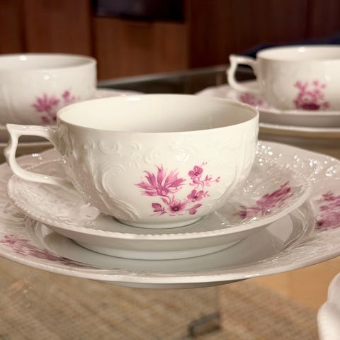 Rosenthal Sanssouci – 5 kahvikuppia + 5 lautasta + 5 tassia, purppurakukka