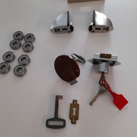 Pinta-asennettavat kalustelukot. Yhteensä 18kpl, yksi on erilainen. E-mitta on 25mm. Kokoon 58 x 39 x 10mm. Sisältää avaimen ja avainkilven. Kuvan mukaiset. Vanhat mutta käyttämättömät. Yhteishintaan 36 euroa. Yhden lukon hinta on 2 euroa.