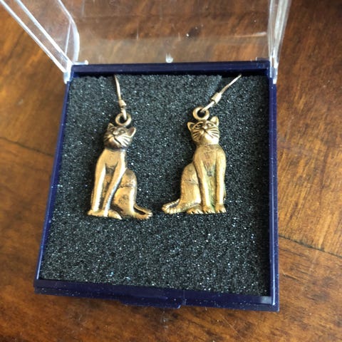 Näyttävät kissa korvakorut hopeaa. Aitoustodistus. Korkeus lenkin kanssa n. 42 mm. Käyttämättömät
