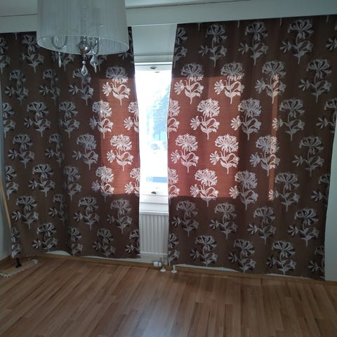 4kpl samanlaisia verhoja L130, K175 x 4 kpl, leveys kaikki 4 verhoa yhteensä siis 520cm. Alaosassa nauhat jolla verhon alaosan saa rypytettyä. Valo kajastaa verhoista läpi eli ei ole pimennys verho. Kaikki yhteensä hinta tai kerro jos haluat vain pari kappaletta. Nouto,lähetys. Voi yhdistellä toimituskuluja muiden tuotteiden kanssa jotka näet klikkaamalla nimeäni.