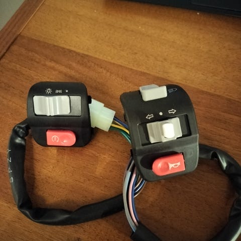 Tuommoinen kuvan ennenkäyttämätön valokatkaisija tai valokytkin viralliselta nimeltään , mopedin ohjaustankoon kiinnitettävä.