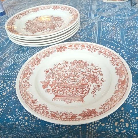 Tableware Made in England, matalia Ruokalautasia 5 kpl täysin ehjää ( ei naarmuja), halkaisija 25.6 cm.