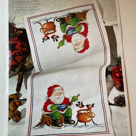 Tekemätön ristipistotyö. Kaikki mukana: aidakangas, langat, neula, ohjeet.