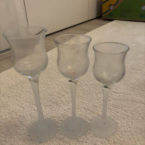 Kolmen lasisen kynttilänjalan setti Partyliten Uljaat-sarjaa. Uudenveroiset.