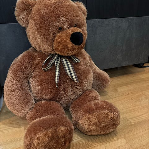 Alun perin perintöleluna saatu, ikivanha nalle. Hajuton, siisti, pyörähtänyt kuivausrummussa pölyjen poistamiseksi ja sitten tuuletettu ulkona pakkasyössä.