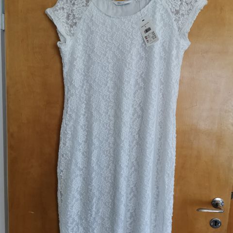 Valkoinen pitsimekko, koko M/L, Vila. Mekossa on vuori ja pienet hihat. Mekko on käyttämättön, mekossa laput tallella. Vyötärö n. 80 cm, rinnanympärys n. 90 cm, pituus n. 88 cm.