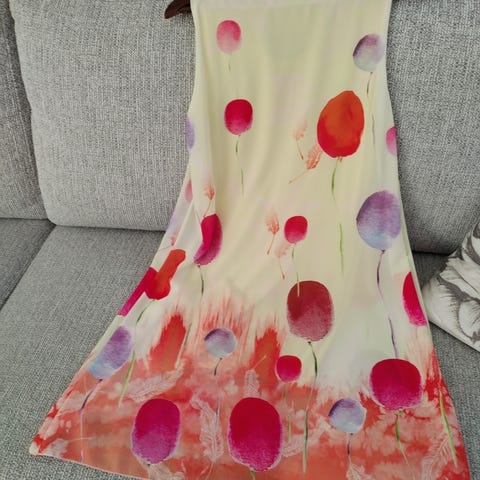 Myydään Me&i tähtikuvio mekko, koko M. Mekko laskeutuu kauniisti pohkeelle asti. Keskellä rypytys.