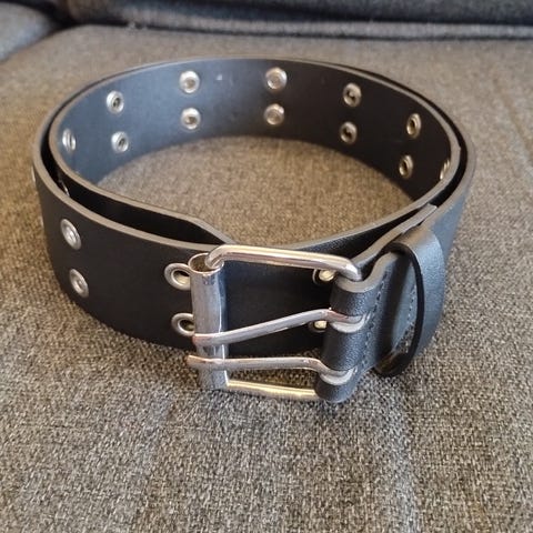 Musta,ohut vyö nahkainen. Käytetty erittäin vähän,on kuin uusi. Pituus soljen kanssa n.86 cm . Hinta sisältää postikulut.