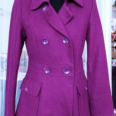 Bonita violetti, kevyt tuulitakki, espanjalaista kokoa 40, vastaa kokoa S, 36-38. Pystykaulus. Takin saa takaa säädettyä istuvammaksi. Kaksi läpällistä taskua. Lämpimänä päivänä hihat voi kääräistä, hihoissa on nappi ja nauha sitä varten. Ihanteellinen takki lomareissulle mukaan. Takki on erittäin hyvässä kunnossa, ei mitään käytön jälkiä.