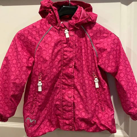 Reimatec kevyt toppatakki välikauteen. Hihoissa ja helmassa kulumaa, yleisilme siisti. Sivutaskut, kiristystarrat hihoissa, heijastinnauhat