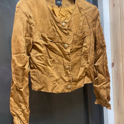 Tyylikäs ril's pitkähkö 82 cm pituinen jakku, kainalomitta 4 8cm.Jakun sivuissa halkiot samoin hihan suissa. Jakku on vuorellinen ja hailakan keltainen Jakku unohtunut kaappiin joten erinomaisessa kunnossa