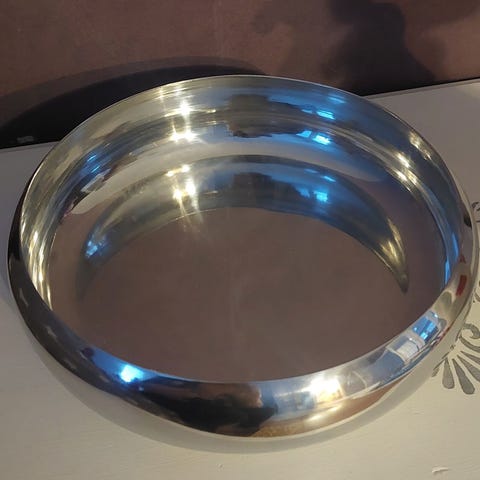 Näyttävä metallinen vati, paksusta metalli levystä pakotettu . Kuvat ei ihan tee oikeutta.