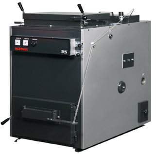 Kattilan teho puulla on 49 Kw, poltettavan puun max. pituus 71 cm. Paino hulppeat 412 kg. Putkilähdöt 2" ja