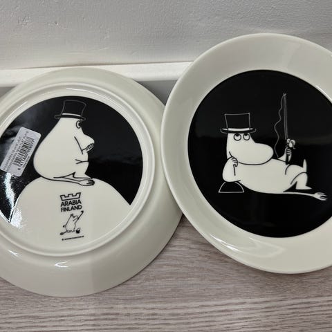 Myyn käyttämättömät muumilautaset, muumimamma ja muumipappa. Lautasissa on kuva molemmilla puolilla. Alkuperäisessä laatikossaan säilytetyt. Myyn molemmat kerralla yhteishinta 100 euroa. Noutona myyn mieluiten.