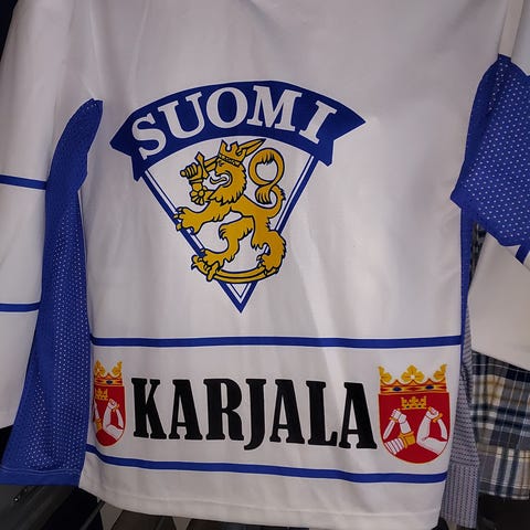 Lasten kokoa L/xl. Suomi jääkiekko paita. Sininen.