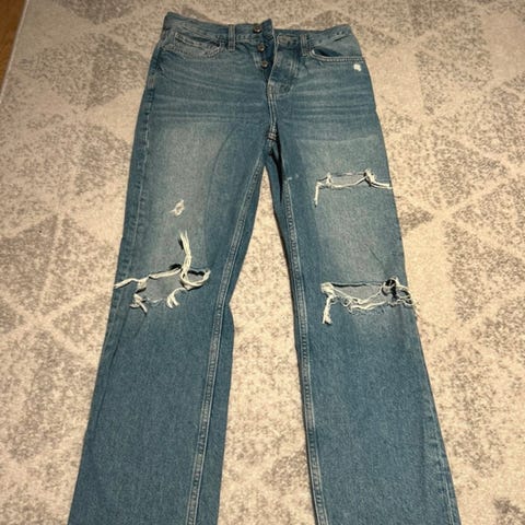 Myydään uudenveroiset sinertävät Primark housut/farkut. Koko 40. Vain sovitettu.