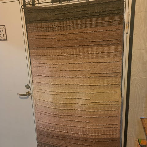 Myydään raanu, jonka värit erittäin hyvin säilyneet. Tehty 70-luvun lopulla. Mitat: korkeus 148 cm, leveys 94 cm. Kulkeutuu lähialueelle ja Lappeenrantaan, voin myös postittaa.