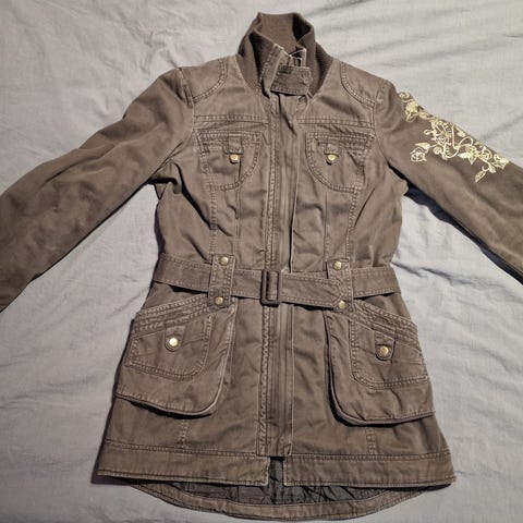 Erittäin siisti musta Barbara Lebek tikkitakki/välitakki, jossa harmaavalkosävyinen eläinkuosia muistuttava vuorikangas. Voi käyttää myös kääntötakkina. Koko 44-46. Kaikai 70 cm.