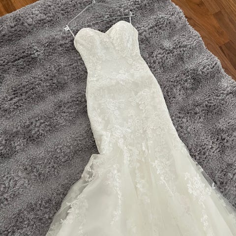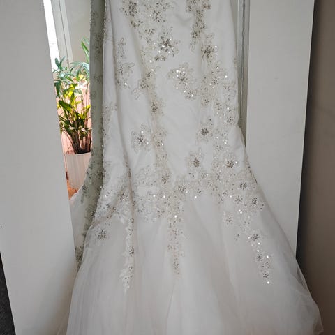 Myydään käytettynä ostettu merenneitomallinen hääpuku. Puku on ostettu alunperin morsius- ja juhlapukuliike Glamourista. Puku on muokattu ompelijalla omiin mittoihini sopivaksi (vaatekokoni yläosissa xs, alaosissa s). Mukaan pukupussi ja vannealushame. Saa tulla katsomaan ja sovittamaan :)
