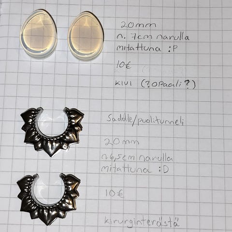 Oranssilla ympyröity semi precious kivi plugit 10 mm. Hinta 4 e.