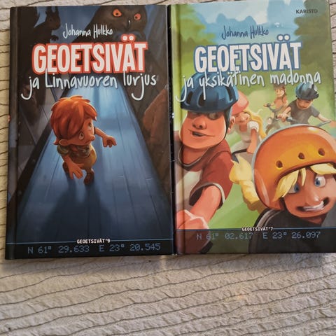 Oululaisen kohta kymmenvuotisen nuorten kirjasarjan alkutaipale. Isotekstisten kirjojen nuoret harrastavat geokätköilyä joka johtaa heidät milloin minkäkin arvoituksen äärelle. Hyväkuntoiset kovakantiset 7e/kpl. Nouto Raisio/postitus 7e