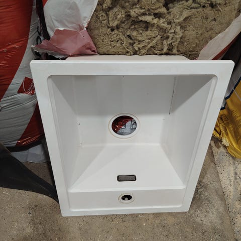 Kuvan mukainen allas ja paljon asennustarvikkeita